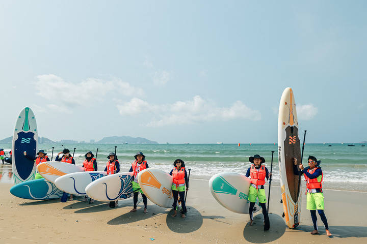 图为亚沙会游跑两项水上桨板救生组